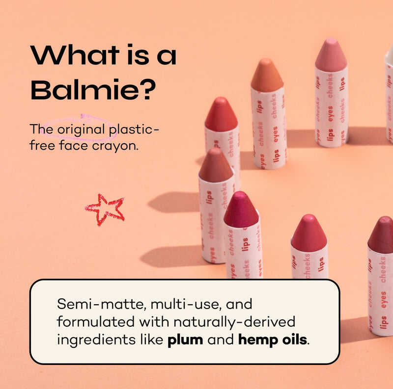 Balmies are made with kokum butter and sunflower wax to create a drier and more matte feel for a long lasting product. Balmies are great for people with oily skin or those who use face oils. Multi-Sticks provide a smoother, cleaner glide and work well with drier skin. The soy butter and coconut oil deeply penetrate skin for a long lasting hydration.