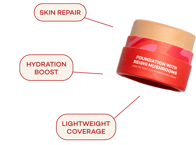 Skin Loving Fungdation is the first foundation with reishi and snow mushrooms, offering hydration and skin renewal in eco-friendly, plastic-free packaging.
